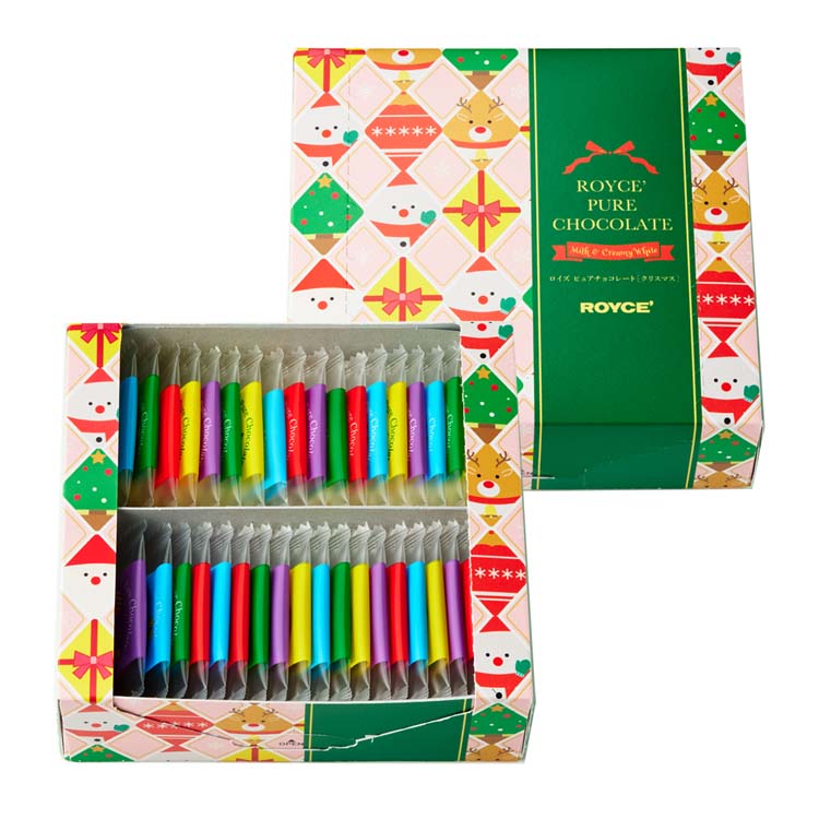 ピュアチョコレート…クリスマスパッケージは毎年購入してしまうのですが、同じピュアチョコレートでもパッケージが可愛いからか、より美味しく感じます。仕事中にどぉしてもお腹が空いた時にも食べています。ロイズさんのチョコレートの美味しさが染み渡ります。そして可愛いパッケージにも癒されます(^^)♪