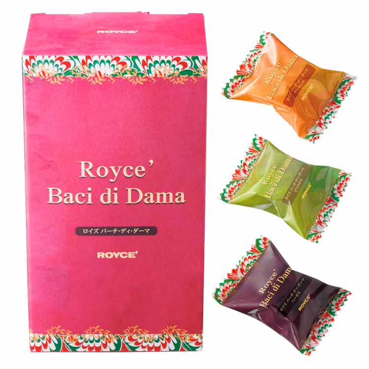 イタリア北西部・ピエモンテ州の伝統的な焼き菓子「バーチ・ディ・ダーマ」をロイズのレシピでアレンジ。 しっとりほろほろとした食感の小粒のクッキーに、味わい豊かなナッツのペーストを入れたリッチなチョコレートクリームをサンドしました。[アーモンド][ピスタチオ][ヘーゼル]の3種類の詰め合わせです。