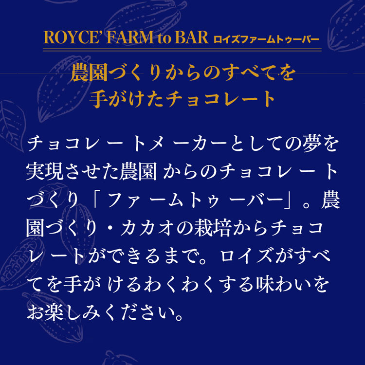フルーティな味わいが魅力の自社農園産カカオ豆を使った、こだわりのピュアチョコレート。穏やかな渋みの後に広がるほのかな酸味が心地よい[スイート]と、ミルクの味わいとほのかに続くさわやかな酸味がバランスのよい[ミルク]のセットです。