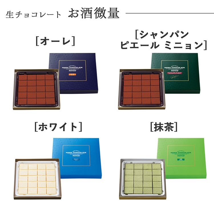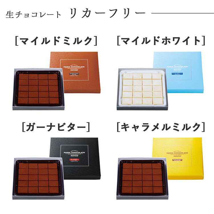 ・生チョコレート 各種・ポテトチップチョコレート 各種・プラフィーユショコラ[オランジュ]以外 乳・大豆 ・プラフィーユショコラ[オランジュ] 乳・オレンジ・大豆 ・チョコレートウエハース 各種 小麦・乳・大豆 ・ロイズアールショコラ[4種詰合せ] 小麦・乳・アーモンド・大豆・マカダミアナッツ ※原材料・栄養成分表示はこちら |