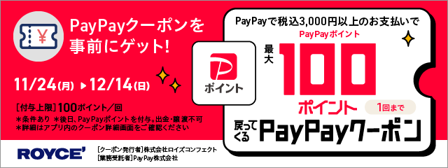 税込3,000円以上のお買い上げで、最大100ptのPayPayポイントが付与されます!