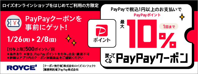 ※ロイズオンラインショップではじめてPayPay決済にてご注文をされる方、